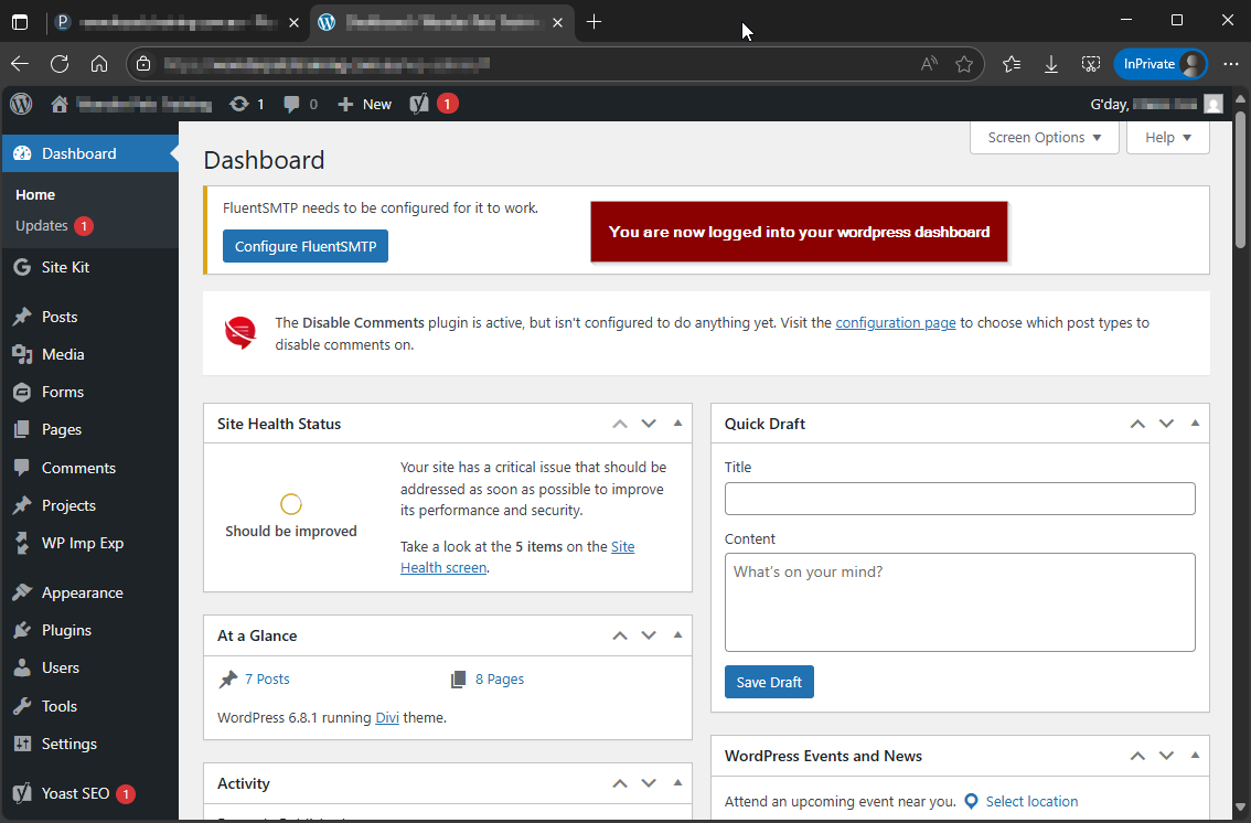 You should now see your WordPress dashboard, ready for you to manage your website.